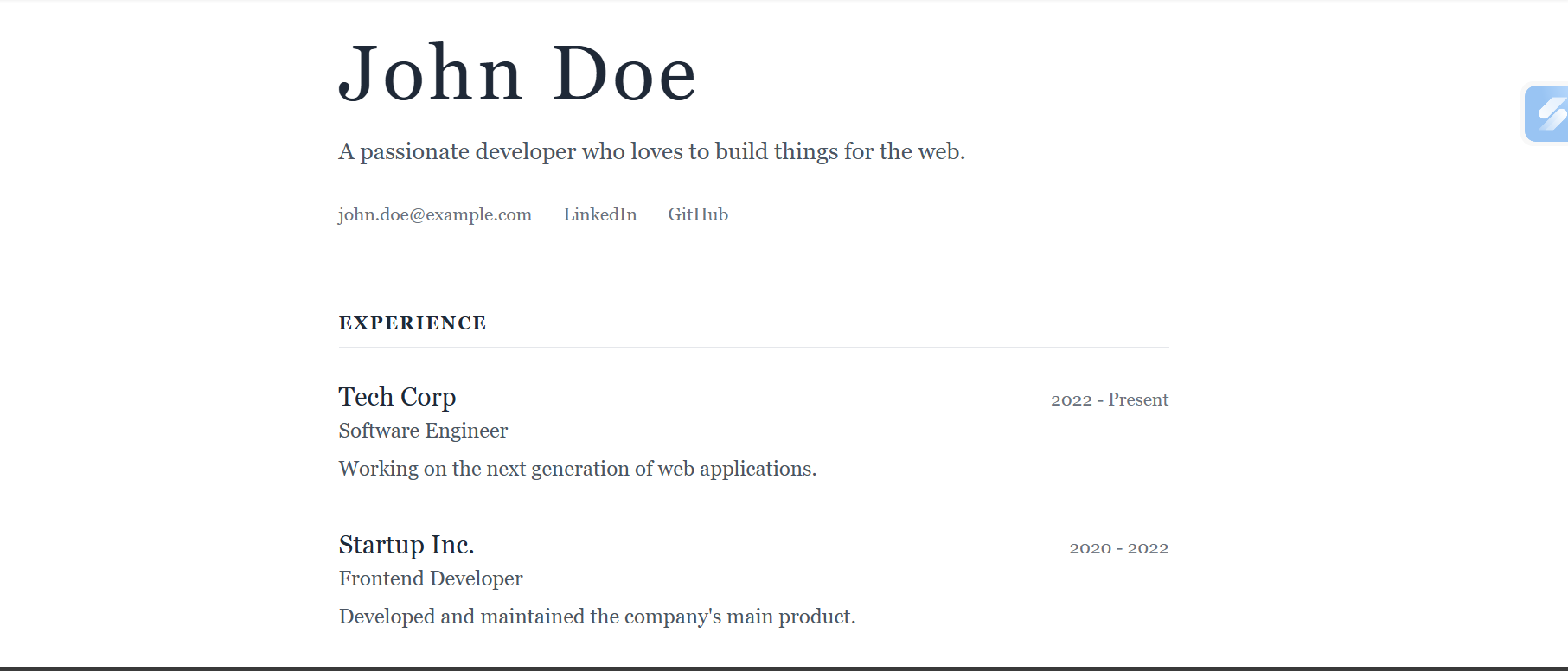 Instantly create a stunning, professional-looking portfolio website. No coding required. Just fill in your details, choose a template, and get a shareable link.
